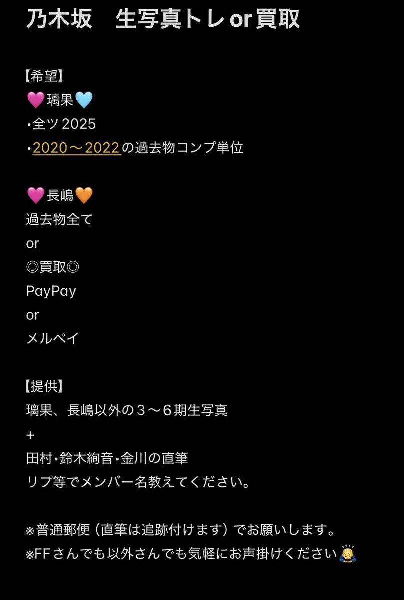 乃木坂46 生写真 トレード 真夏の全国ツアー 全ツ 東京 神宮 過去物 買取 トレ 生写真整理したい為 買取 or璃果、長嶋 へのトレ等していただけたら幸いです。 提供物はツリーに並べます。 こちらの画像も確認いただけたら幸いです 気軽にリプ等していただけたら幸いです。 よろしくお願い致します🙇♂️