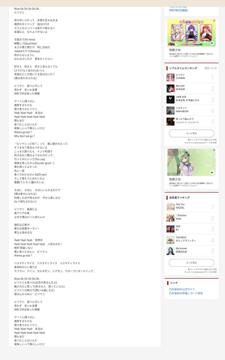 乃木坂46 40thシングルビリヤニ 前作と今作にお発売時期間違えてないかって気もするw でもMVの乃木坂ちゃんが可愛いからいいか それにしても梅が掬い取ったターメリックの量… 米俵一俵くらいのビリヤニ作るんか? ノリはよくて楽しい曲だけど相変わらず薄~~~~い歌詞