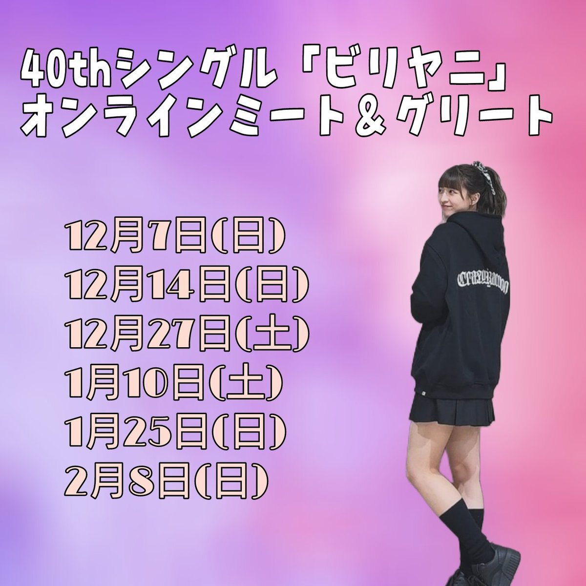 40thシングル「#ビリヤニ」発売記念オンラインミート&グリート 第3次応募受付が本日11月7日14時までとなっています😌 #あやてぃー とのたくさんのお話を楽しみましょう✨ #吉田綾乃クリスティー #乃木坂46 pic.x.com/sI6yLK1pN8