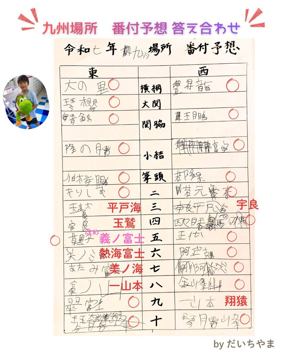 九州場所 番付予想の答え合わせ】 横綱〜幕内二枚目までパーフェクト💮 その他もかなりの正答率👏🏻 顔ぶれのズレは翔猿↔︎豪ノ山のみ。 今回はなかなかの読みでした‼️ #大相撲 #九州場所 #番付予想 #番付発表 #sumo #8歳 #答え合わせ pic.x.com/dz06j31MsS x.com/flower_words/s…