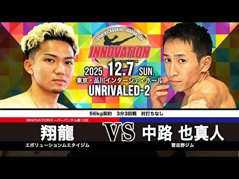 UNRIVALED-2 品川インターシティーホール 第5試合 56kg契約 3分3回戦 肘打ちなし ◎翔龍(エボリューションムエタイジム/INNOVATIONスーパーバンタム級10位) ✕中路 也真人(習志野ジム) 1RTKO 1’26 #UNRIVALED2 #japankickboxinginnovation