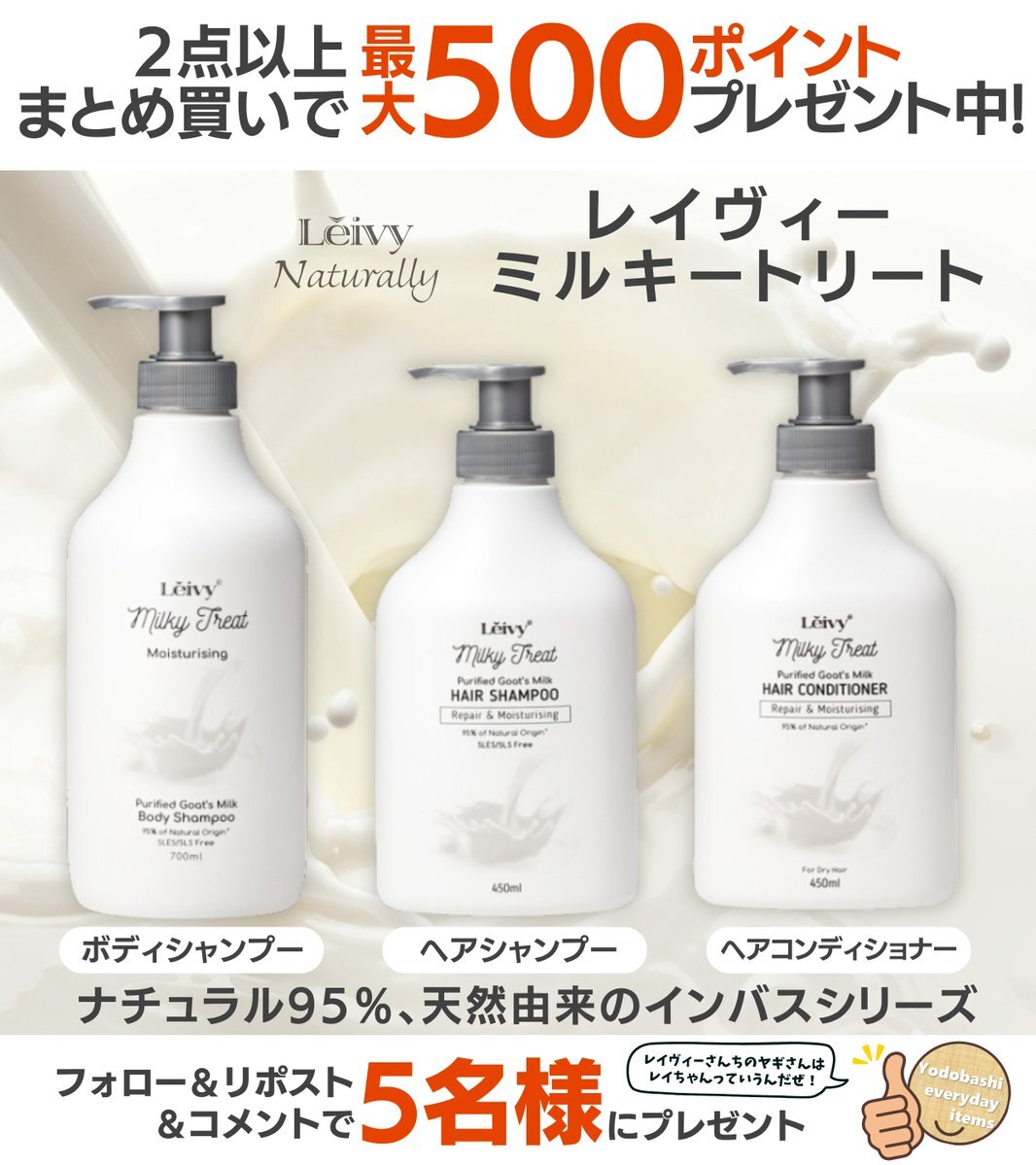 / お得なキャンペーン開催中‼ \ ヤギミルクでお馴染み🐐 レイヴィーやジョイココの対象品が まとめ買いで最大500ポイント🙌 レイヴィー ミルキートリート ボディシャンプー&シャンコン セットで5名様に🎁 ➡yodobashi.com/?word=%E3%83%A… 👉フォロー&リポスト 👉レイヴィー製品の印象を✍️ 👉11/15迄