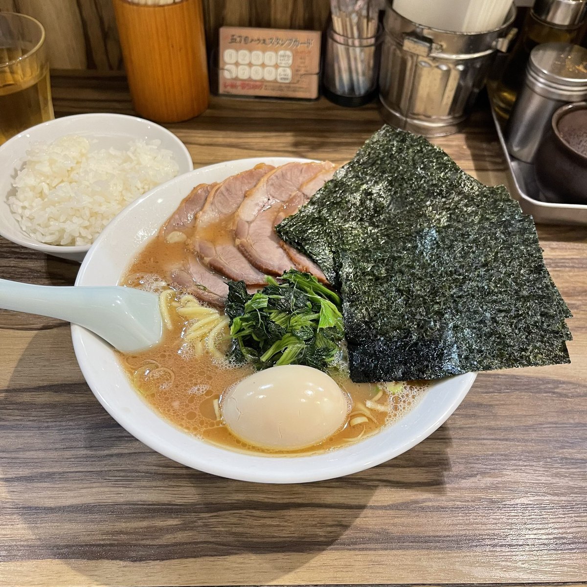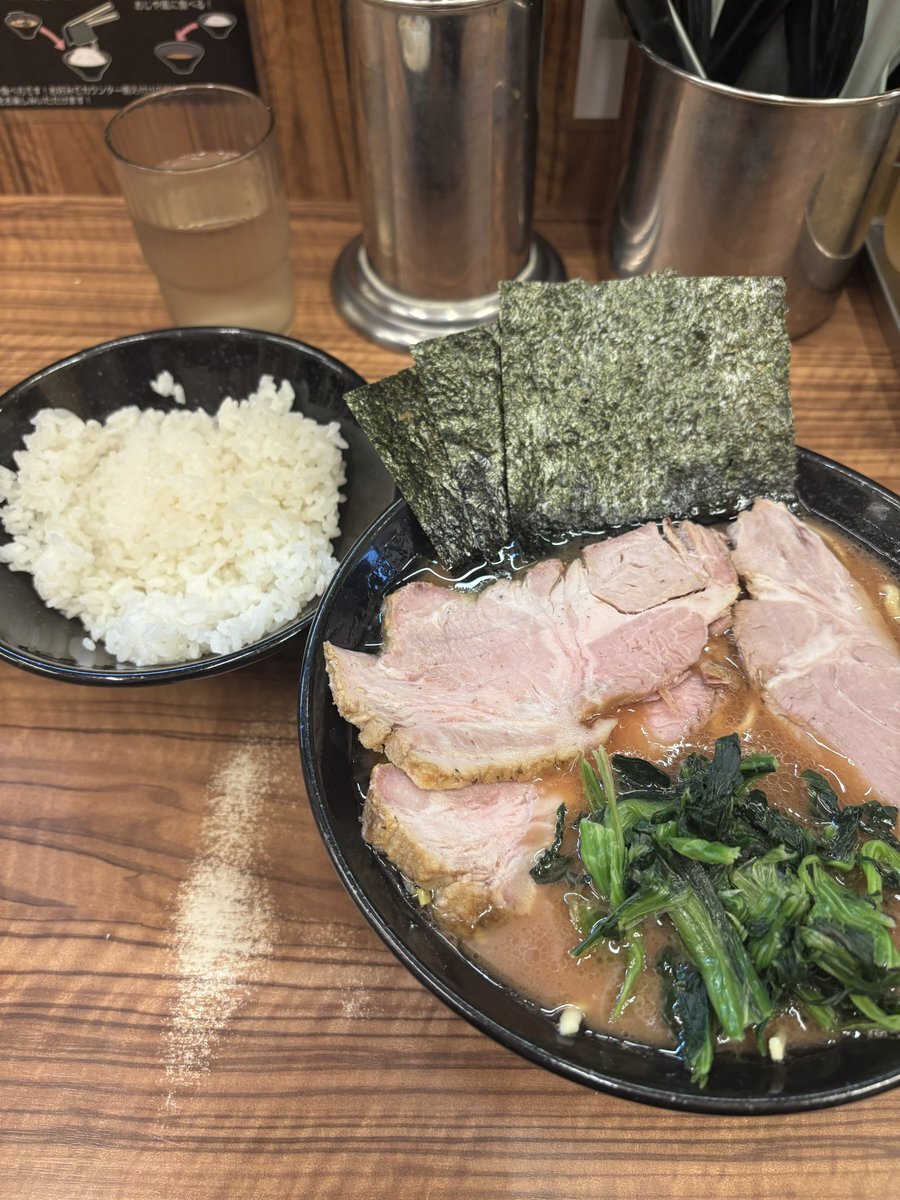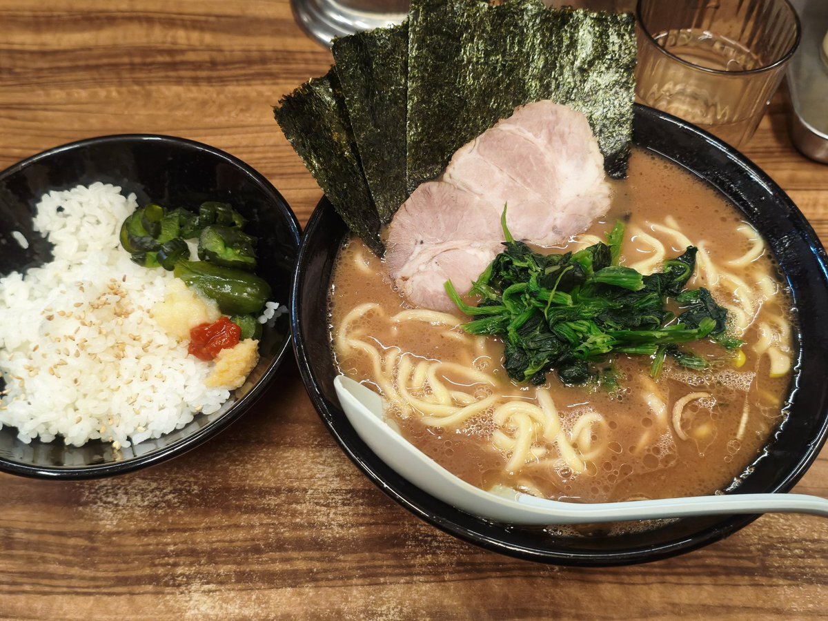 中野区中野「二代目武道家」の「ラーメン並 海苔増し+ライス」 通し営業が有り難いこちらのお店 午後4時頃の訪問にも関わらず店内はほぼ満席😃 THE家系と言った感じの醤油強めの豚骨スープに海苔を浸してニンニクをくるんでライスと一緒にかき込むのがとても幸せ😍 100円でライス食べ放題は凄すぎ❗️ pic.x.com/jmrlHh5t3m