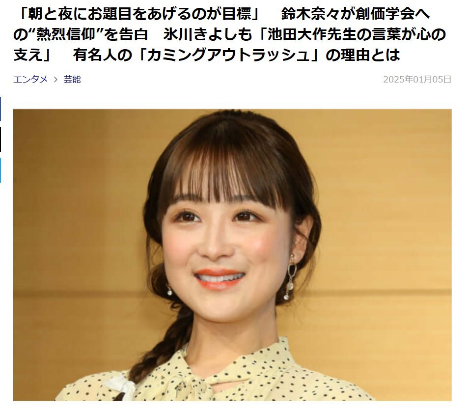 🍘 塙宣之さん(47) 私の原点 加藤茶さん(82)綾菜さん(37) 共に会員 久本雅美さん(67) 池田先生の枕になりたい 鈴木奈々さん(37) 支えは学会 岸本加世子さん(64) 先生のおかげ 氷川きよしさん(48) 先生と常に一緒 滝沢秀明さん(43) 松山ケンイチさん(40) 井上真央さん(38) pic.x.com/GxxkJ0am9p