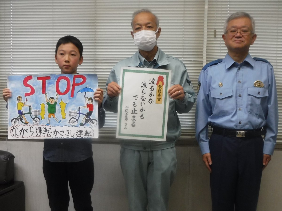 『渡るかな 渡らないかも でも止まる』 #柏崎警察署 地区交通安全対策連絡協議会が主催の交通安全標語・川柳コンテスト及びポスターコンテストの最優秀作品が決定しました🏆 受賞者2名には、警察署長から表彰状が贈られました。 たくさんの素敵な作品のご応募、ありがとうございました! pic.x.com/UsPSGltktr