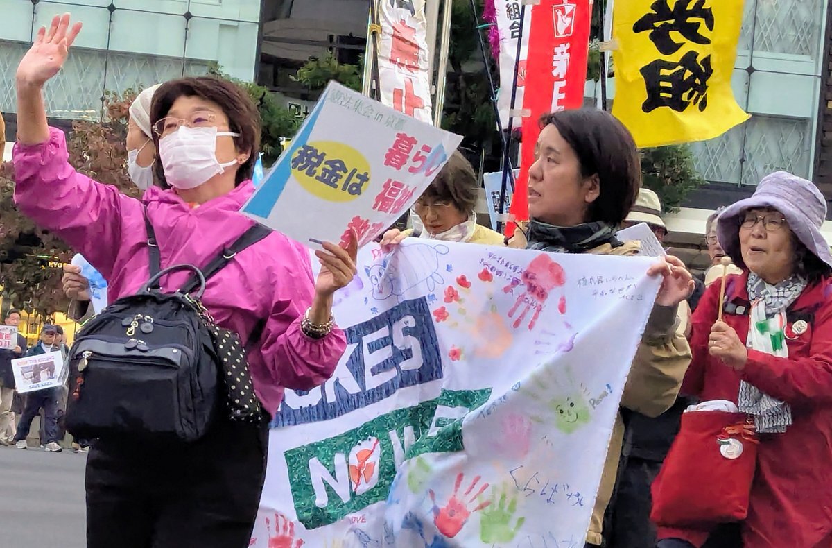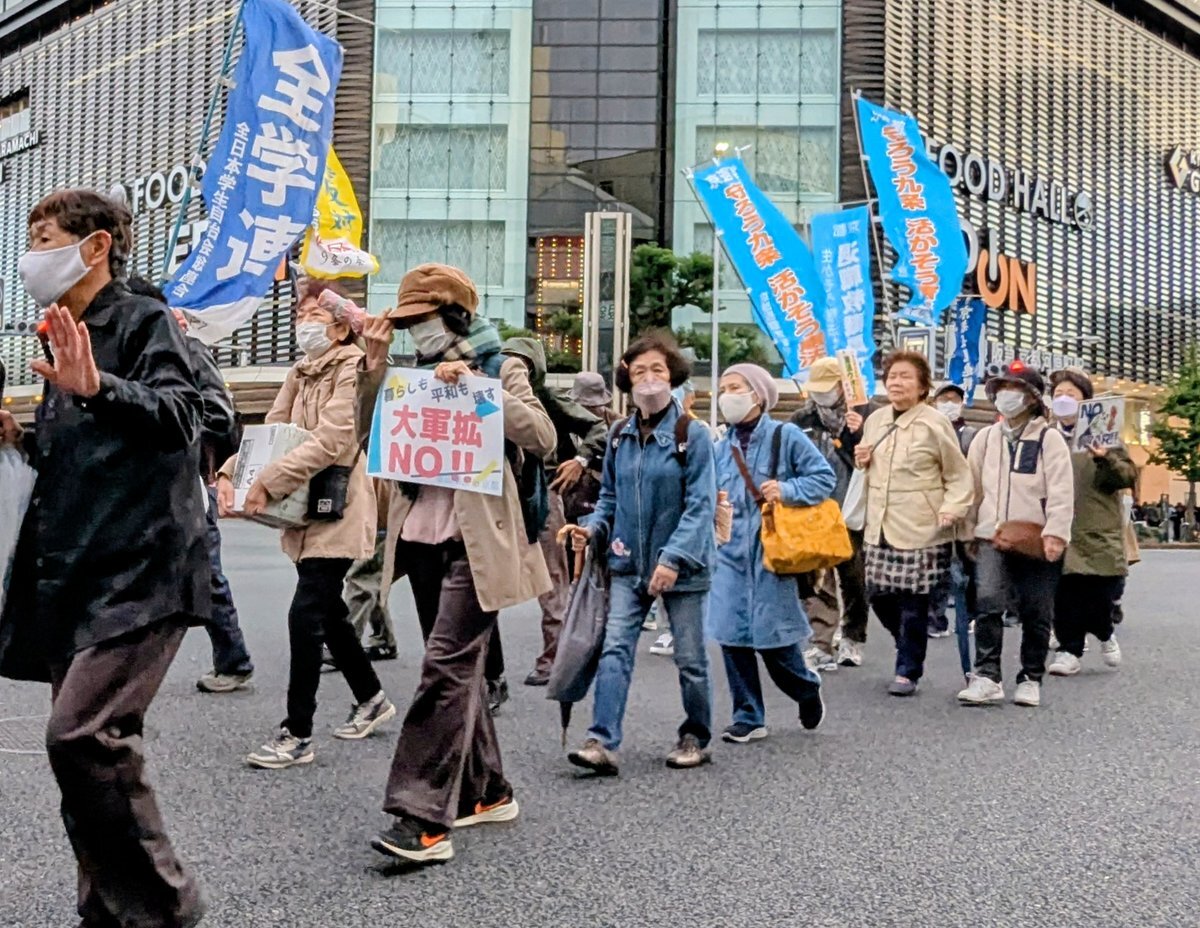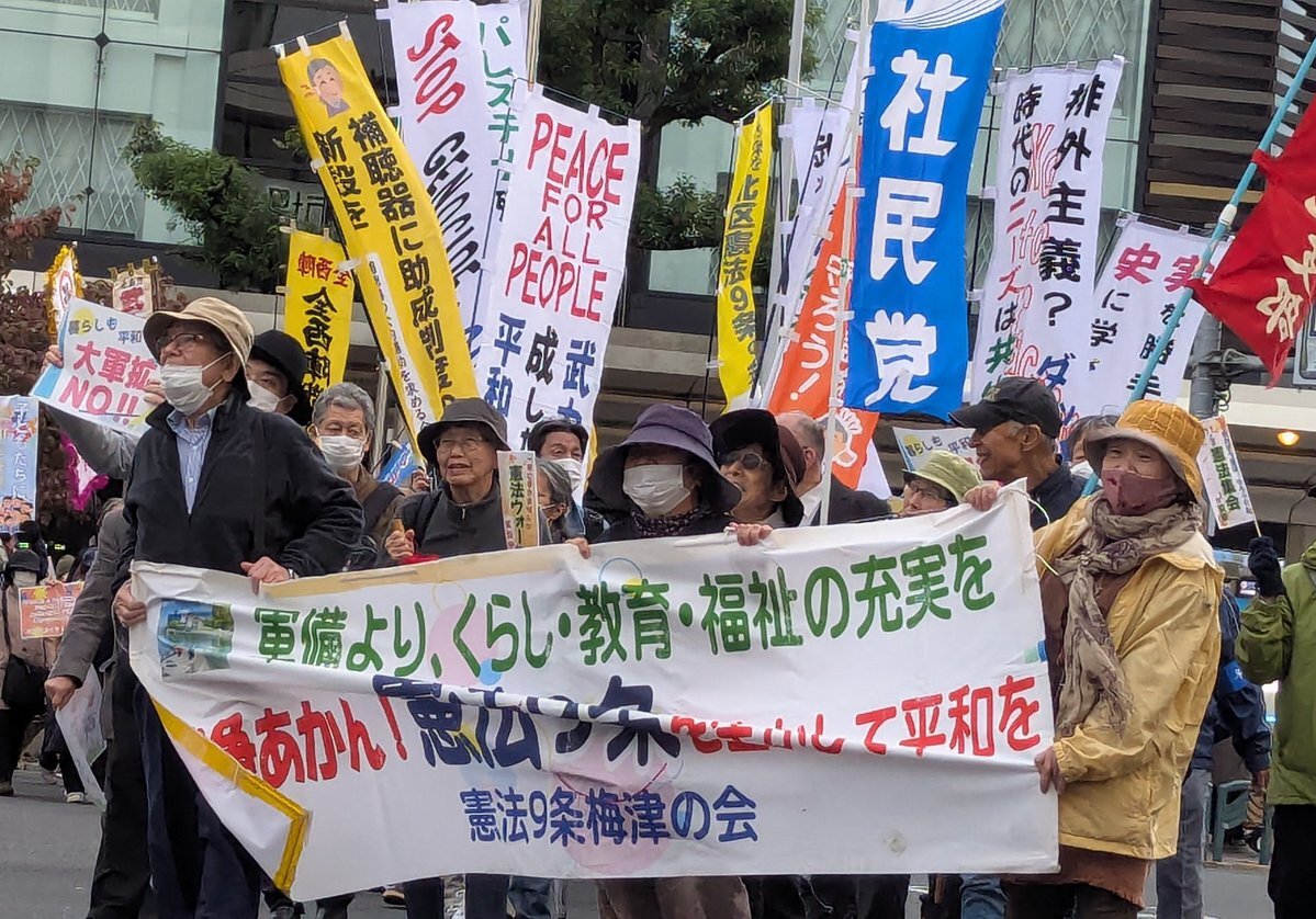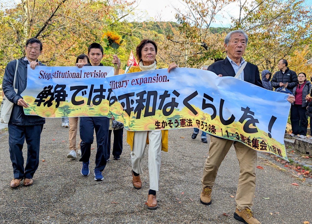 集会では、社民党、新社会党、共産党、れいわ新選組があいさつ、緑の党がメッセージを寄せました。集会アピールを採択後、参加者はうたごえや平和おどり先頭に、アピールグッズを掲げ、京都市役所前まで憲法ウォーク。戦争法はただちに廃止! 戦争したがる政府を変えよう!等コールを響かせました。 pic.x.com/w7lN4zagIG
