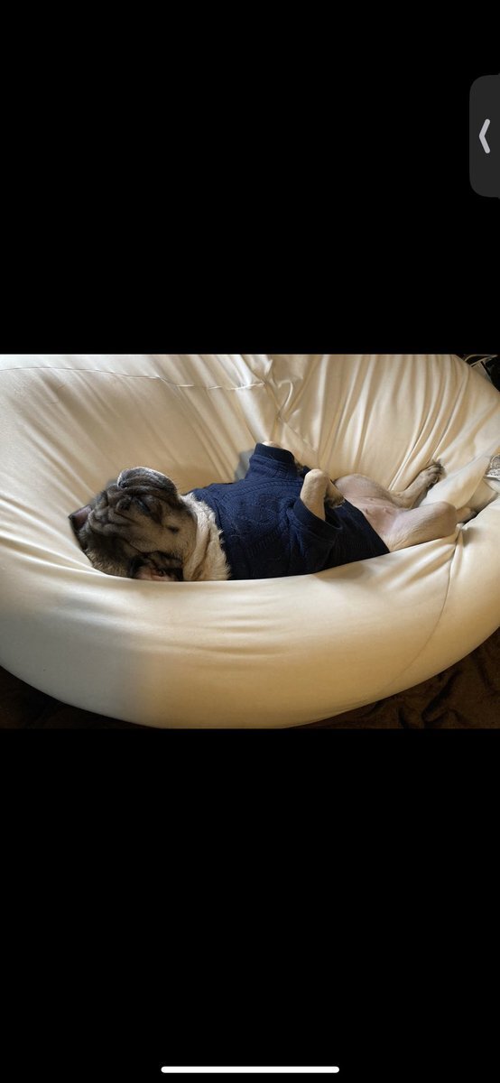 小梅が好きならもっかい買うかな・・・ でもだれた時の処分が面倒だよね #パグ #パグのいる生活 #人をダメにするソファ pic.x.com/1AhinclMhR