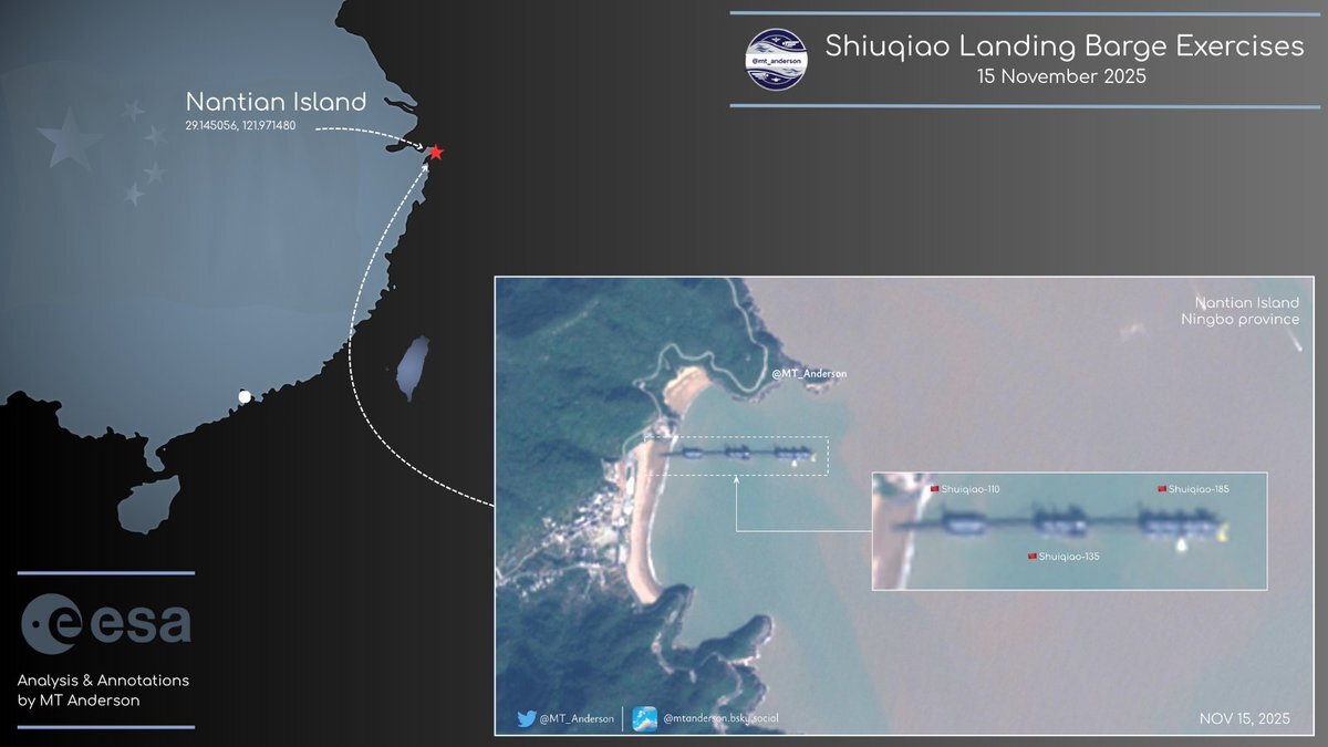 🔎🇨🇳Back to Work: China's 'Invasion Barges' Return to Taiwan-Simulated Training Ground OSINT Confirmed (Nov 15): The PLAN's three Shiuqiao Landing Barges are back at Nantian Island, resuming their amphibious landing exercises. This confirms a high-tempo, continuous training