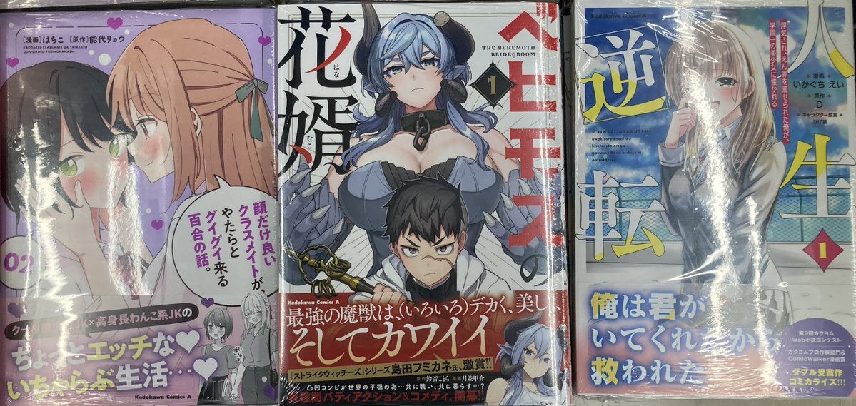 【新刊入荷情報】 角川コミックス・エース新刊 「顔だけ良いクラスメイトが、やたらとグイグイ来る百合の話。(2)」 🎁アニメイト特典:イラストカード 「ベヒモスの花婿(1)」 「人生逆転 浮気されえん罪を着せられた俺が、学園一の美少女に懐かれる(1)」 🎁アニメイト特典:複製ミニ色紙 本日入荷ぜよ pic.x.com/6eKpQ455Sl