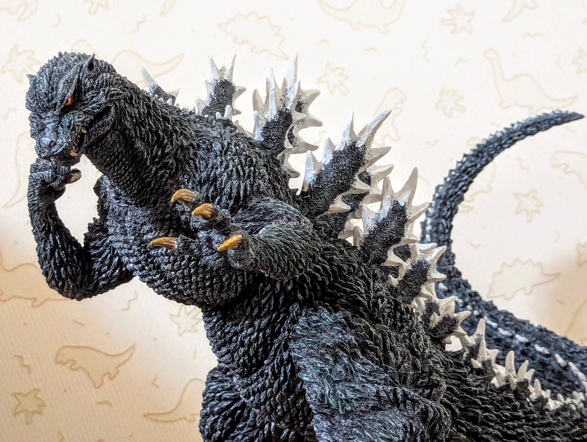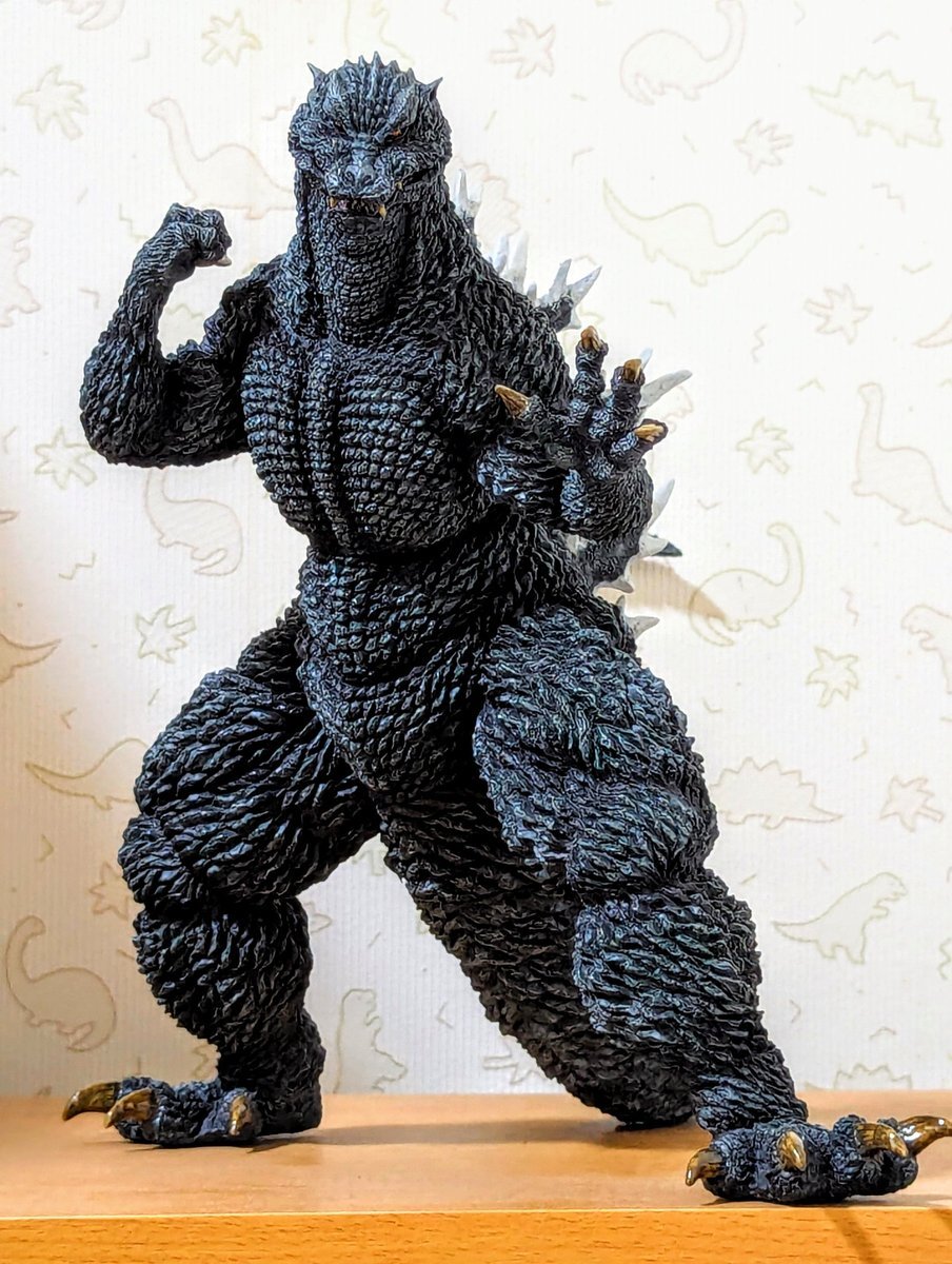 四畳半工房 FWゴジラ ファイティングポーズ 人生初の大型レジンキット‼️ なんとか完成させる事ができました👍 仁王像を彷彿とさせるポーズと表情が最高です 激闘シーンをイメージして全身にドライブラシ ようへいさん造形の肉体美を強調できてたらなと🖌️ 大好きなゴジラなので愛を込めて作りました pic.x.com/38fKlSmoNU