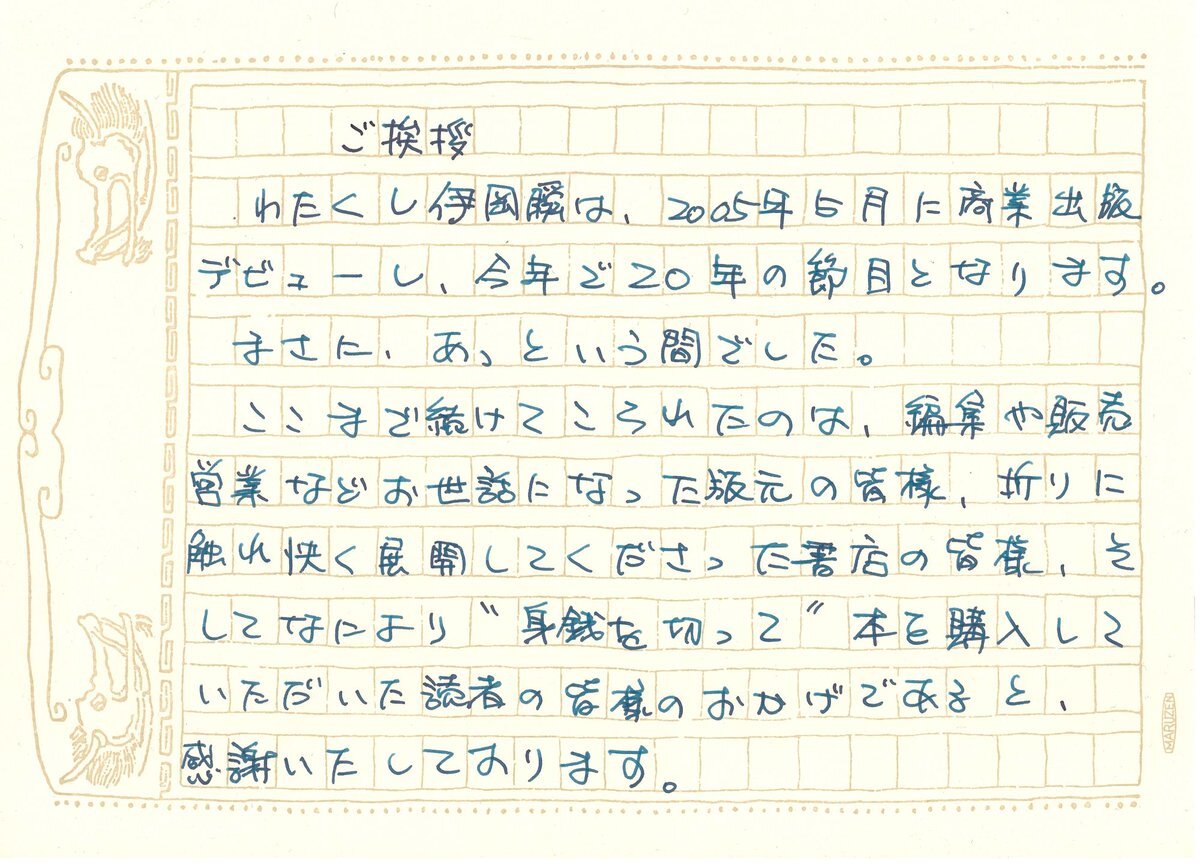 わたしは、商業出版デビューして今年で20年目になります。 個人的には単なる通過点であり特段の意味はないのですが、ここまで支えてくださった皆様に、手書きの文でお礼をしたいとずっと思っておりました。 相変わらずの達筆ですが(笑)感謝の気持ちです。 今後ともよろしくお願いいたします pic.x.com/2vNJrgNuuM