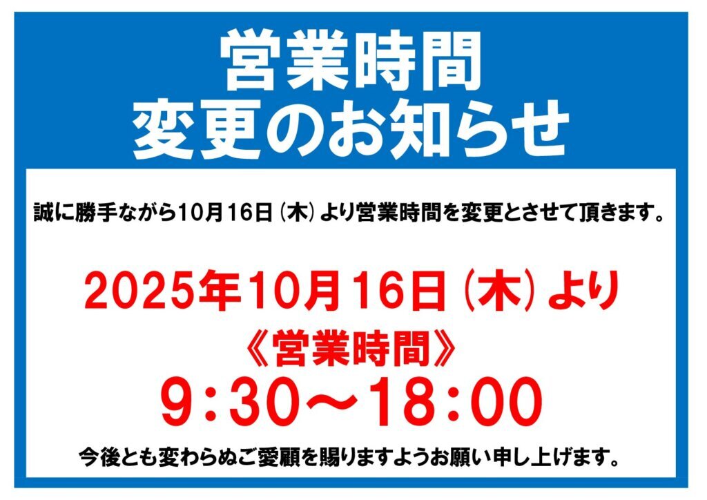 【営業時間変更のお知らせ】 平素よりYSP船橋をご利用いただき、誠にありがとうございます。 10月16日(木)より営業時間を変更させて頂きます。 2025年10月16日(木)より 営業時間 9:30~18:00 定休日 月曜日、火曜日 今後とも変わらぬご愛顧を賜りますようお願い申し上げます。 pic.x.com/RxtiIT0LfU