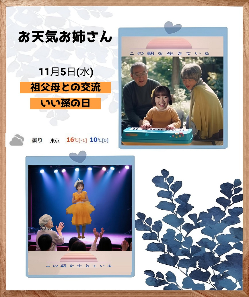 昨日の歩数計 6445歩 11/5 昨日は朝入浴~訪問看護~夕方ライブへ 今日は通常出勤⇒買い物~帰宅。 明日は通常出勤⇒山達ライブ~NHKホール! 祖父母との交流・ #いい孫の日 #今日は何の日 #お天気お姉さん #この朝を生きている #眉村ちあき非公認コラージュ pic.x.com/Ec3cRBHyTE