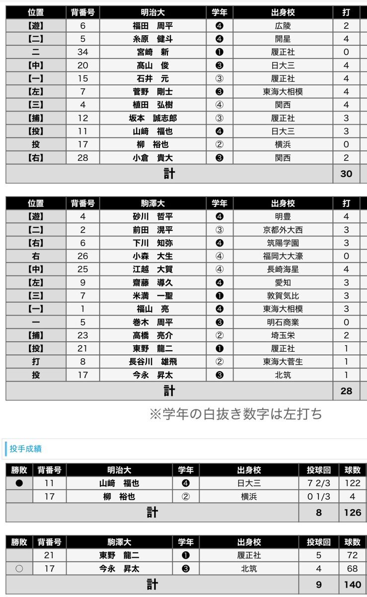 返信先:@snowskisnow明治大の4番打者が石井元内野手(Honda鈴鹿-Honda熊本)なんですね。対戦相手の駒澤大の今永昇太投手が投げているってことは、同級生だったので片山雄貴投手(Honda鈴鹿-Honda熊本)もベンチ入りしていたのでは…。2人揃って #社会人野球 で転籍後も活躍したのは珍しいですよね。 x.com/snowskisnow/st…