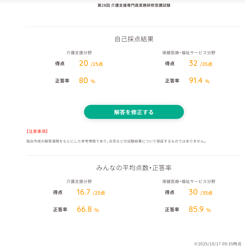 おはようございます(=^・・^=) 2025/10/12にあった令和7年度(第28回) 広島県介護支援専門員実務研修受講試験 自己採点してみた(-_-)💦 あとは公式様からの…通知待ちです (`・ω・´)ゞ 合格発表 令和7年11月25日受験者全員に郵送により通知 © SMS Co., Ltd.様より←画像一部SS  #ケアマネ試験2025 pic.x.com/8ngFHtfwtE
