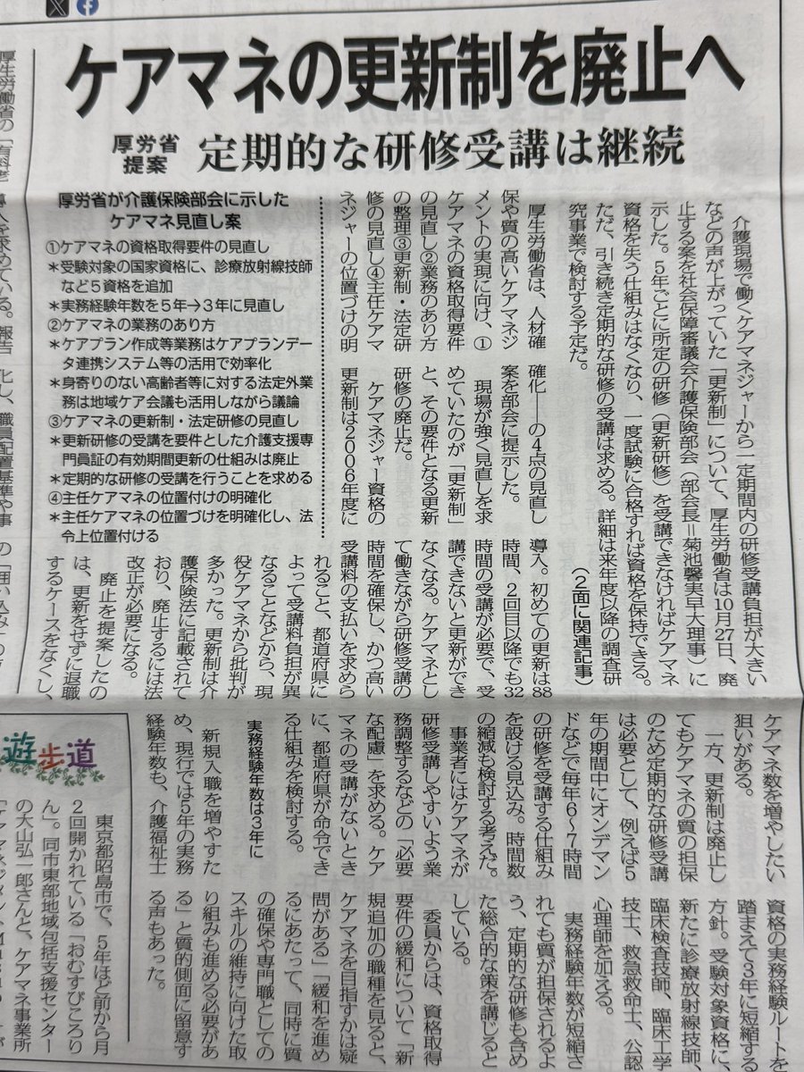 2027年、私が介護福祉士になってから丸3年になる。 2027年からケアマネージャー受験資格が3年になると言われている。見切り発車で2027年お正月から勉強始めようかな…、と再来年の事をもう悩んでいる(笑)。