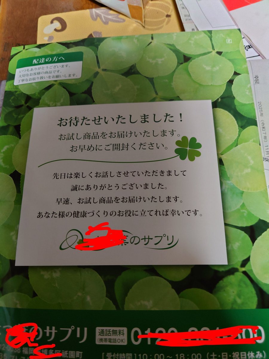帰宅したらこの母宛の代金引換商品が 80過ぎの母がこんなの頼むわけもなく郵便配達員に「980円です」と言われわけもわからず払って受け取ったと😱 こういうの許せない私は激怒本来一旦受け取ったものは返せないところ〒との話し合いにより受取拒否にしてもらいました pic.x.com/TPhQm8gdyk