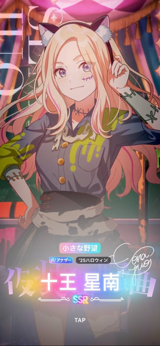 無料10連は手毬・美鈴・星南のサポカが来てくれました🙏 仮装狂騒曲星南は有償確定でお迎えしました🧟 pic.x.com/2VWsNIXjmn