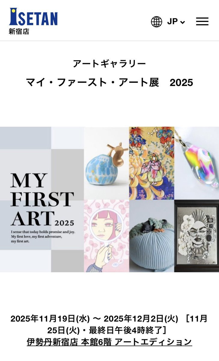 来週19日水曜から新宿伊勢丹6階アートギャラリーで始まる MY FIRST ART展2025に参加します。イセタニスタの駒魔子さんからお声がけいただきました。“はじめてアートを買うきっかけ”をテーマに、伊勢丹新宿店公式サポーター「イセタニスタ」のアート好きメンバーと一緒に作り上げた、共創型アート展。 pic.x.com/n1iAu1L8aM