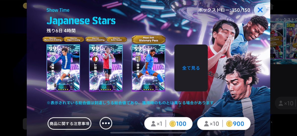 ShowTime【Japanese Stars】 伊東 純也、上田 綺世、鈴木 彩艶がダブルブースターShowTimeで登場! イナズマは初ShowTime🙆♂️ アヤセは初ShowTime🙆♂️ ザイオンは初ShowTime🙆♂️ バナーは通常運転! 今回も浪漫が溢れているので回しました! いざ😠 pic.x.com/LsU3fb2CMP
