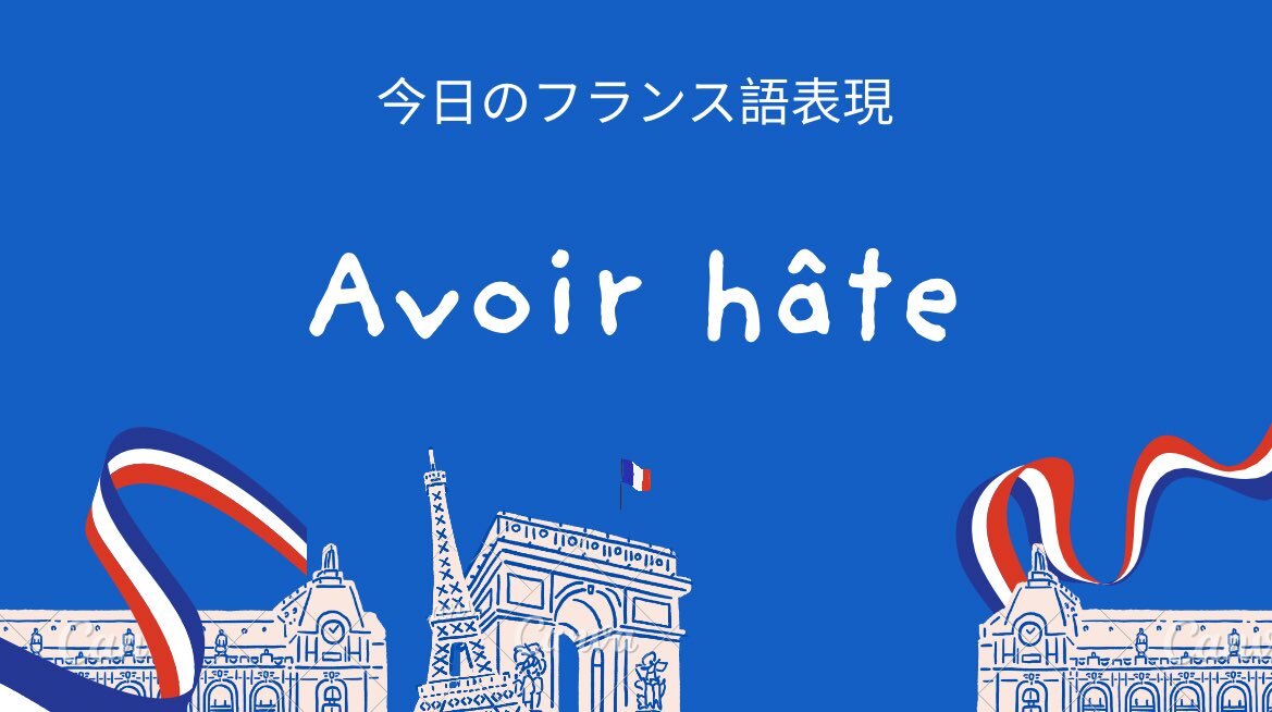 🇫🇷 今日のフランス語表現149 「Avoir hâte」 意味: 待ちきれない!楽しみで仕方ない! 🗣 例文: J’ai hâte de te voir, tellement hâte que j’en tremble. (会いたくて会いたくて震える。) On a hâte que les vacances commencent. (休みが始まるのが待ち遠しい!) 🔍 語源メモ: pic.x.com/LC9cNGSfnd