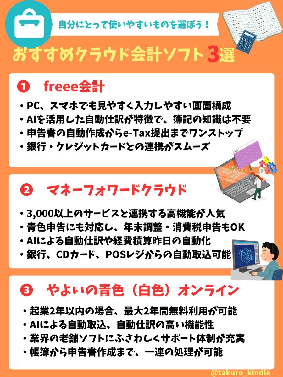 【2025年確定申告におすすめ📘】 会計ソフト11選をタイプ別に整理👇 ・法人向け:弥生会計/マネーフォワードクラウド ・個人向け:freee/やよいの青色申告 ・安さ重視:会計王 ・多機能:勘定奉行 どれを選ぶかで“作業時間が数時間変わる”! 詳しい比較はこちら👇 012cloud.jp/article/accoun…