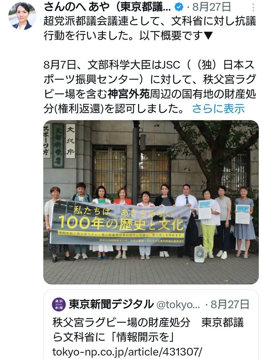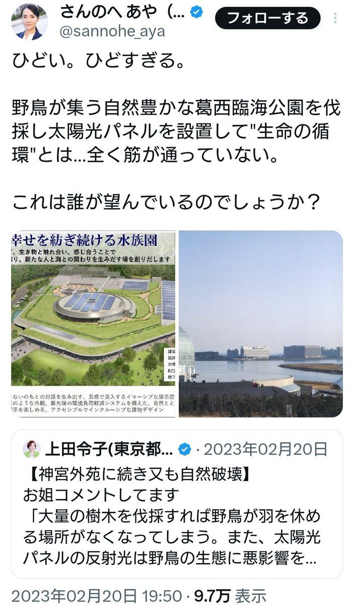 佐藤沙織里って愛国者っぽく振る舞ってるが神宮外苑再開発や葛西臨海公園再整備に立憲共産党や朝日新聞と足並揃え反対する上田令子&三戸安弥と行動を共にしてるから全く信用ならない。「女阿比留瑠比」とでも呼びたくなる。 pic.x.com/gIx7mn2paB x.com/gingastar777/s…