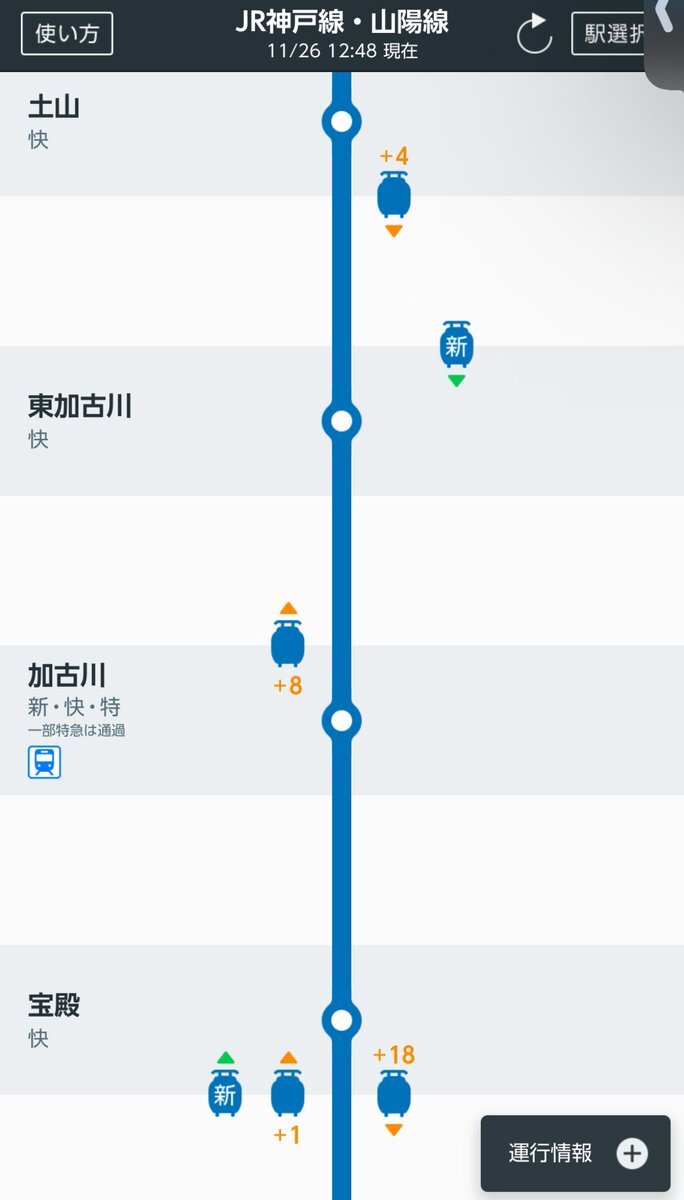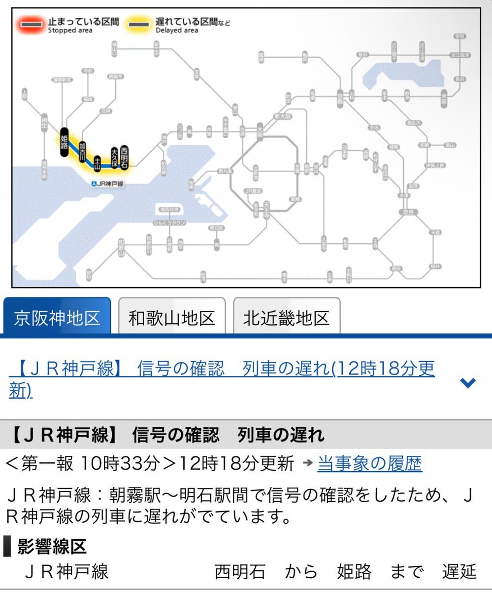 11月26日12時18分現在: JR神戸線:朝霧駅〜明石駅間で信号の確認をしたため、JR神戸線の列車に遅れがでています。 #JR西日本 #JR神戸線 trafficinfo.westjr.co.jp/kinki.html
