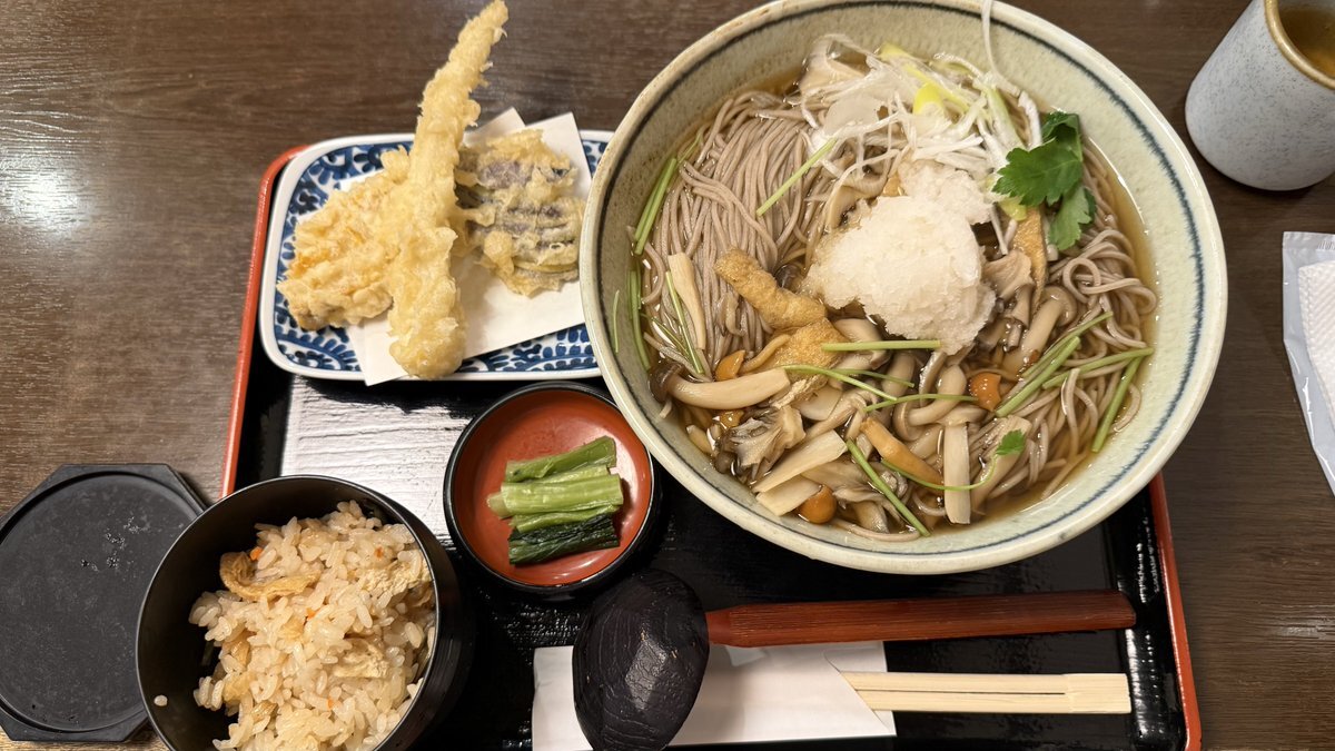 信州そば処 そじ坊 さいたま新都心店 (埼玉県) きのこみぞれそば定食1230円 そば大盛り+250円 野菜天+310円 めちゃくちゃ美味しかった!! そばのボリュームが凄い!大満腹!! 食べても食べても減らなかった。 炊き込みご飯も美味しかった! 野菜天は筍かぼちゃ茄子!最高! また行く!!! pic.x.com/t1rYN5Xq1r