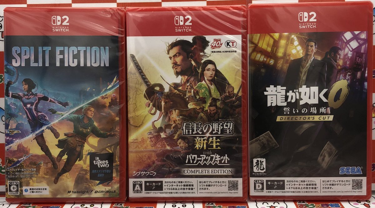 ✨新品ソフト入荷しました✨ #Switch2 ▶︎SPLIT FICTION ユニークなアドベンチャーを 体験できます✨ ▶︎信長の野望新生with PK シリーズ40年の集大成。 かつてない"君臣一体"の戦国体験。 ▶︎龍が如く0 誓いの場所 シリーズ初めての方 オススメ‼️ 「龍が如く 極2」予約受付中ですよ🎶 pic.x.com/zE0QpqVUoC