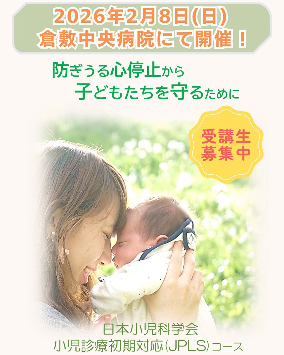 JPLSコースは日本小児科学会が運営している小児科医師を対象とした研修です。 昨年度に続き、今年度も2月8日(日)に倉敷中央病院にて開催予定です! 参加をご希望の方は日本小児科学会HP>各種活動> 小児診療初期対応コースよりお申し込みください。 沢山の参加をお待ちしています! pic.x.com/FJRfHTA6UW