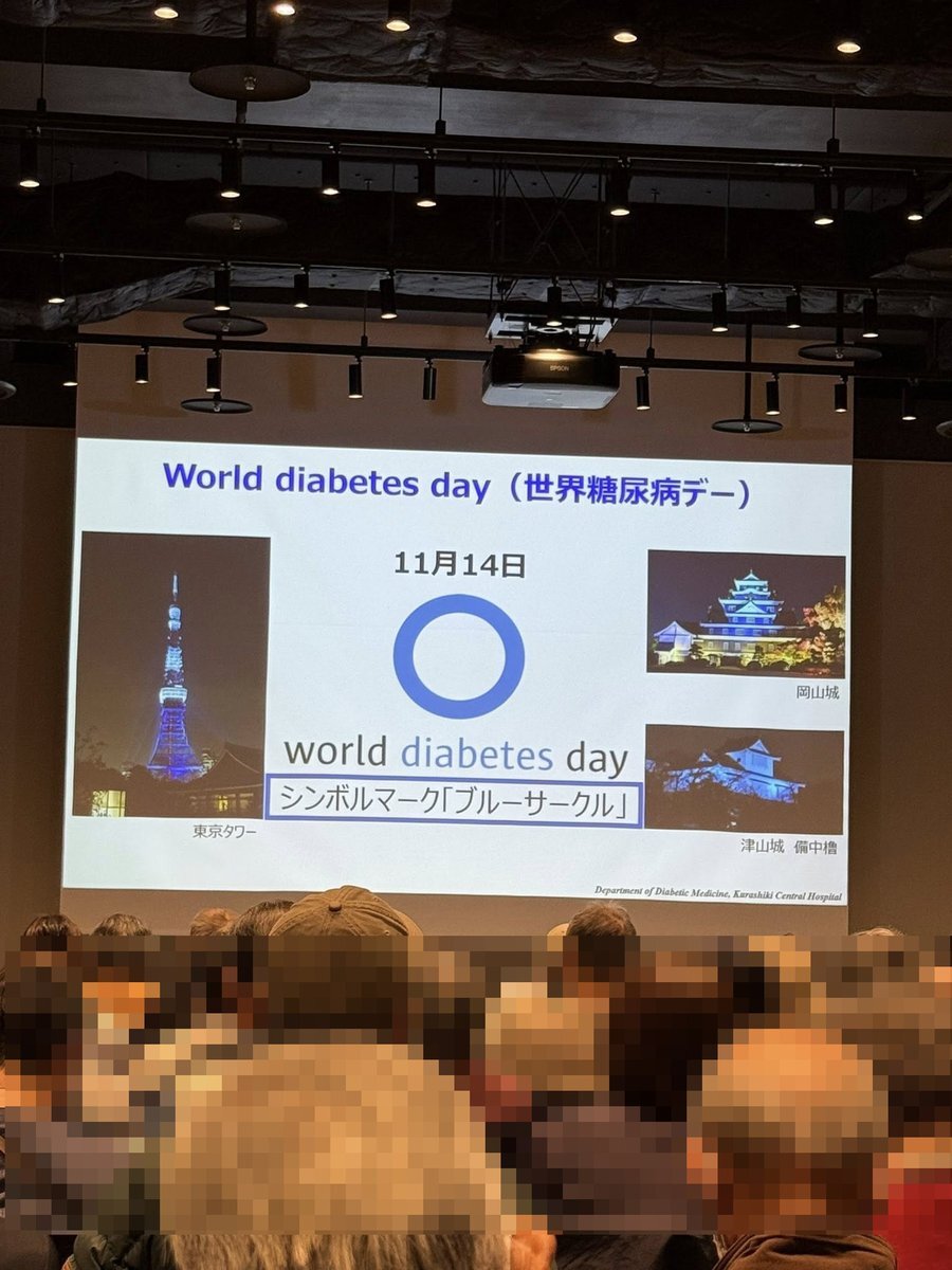 2025年11月12日に倉敷中央病院で開催された「倉中医療の集い 糖尿病診療の最前線」を聴講しました。 多くの方が参加されていました。 11月14日は世界糖尿病デーだそうで、全国各地でシンボルマーク「ブルーサークル」のライトアップがされるそうです。 wddj.jp/event/#32 #糖尿病 pic.x.com/IJocGWxYpT