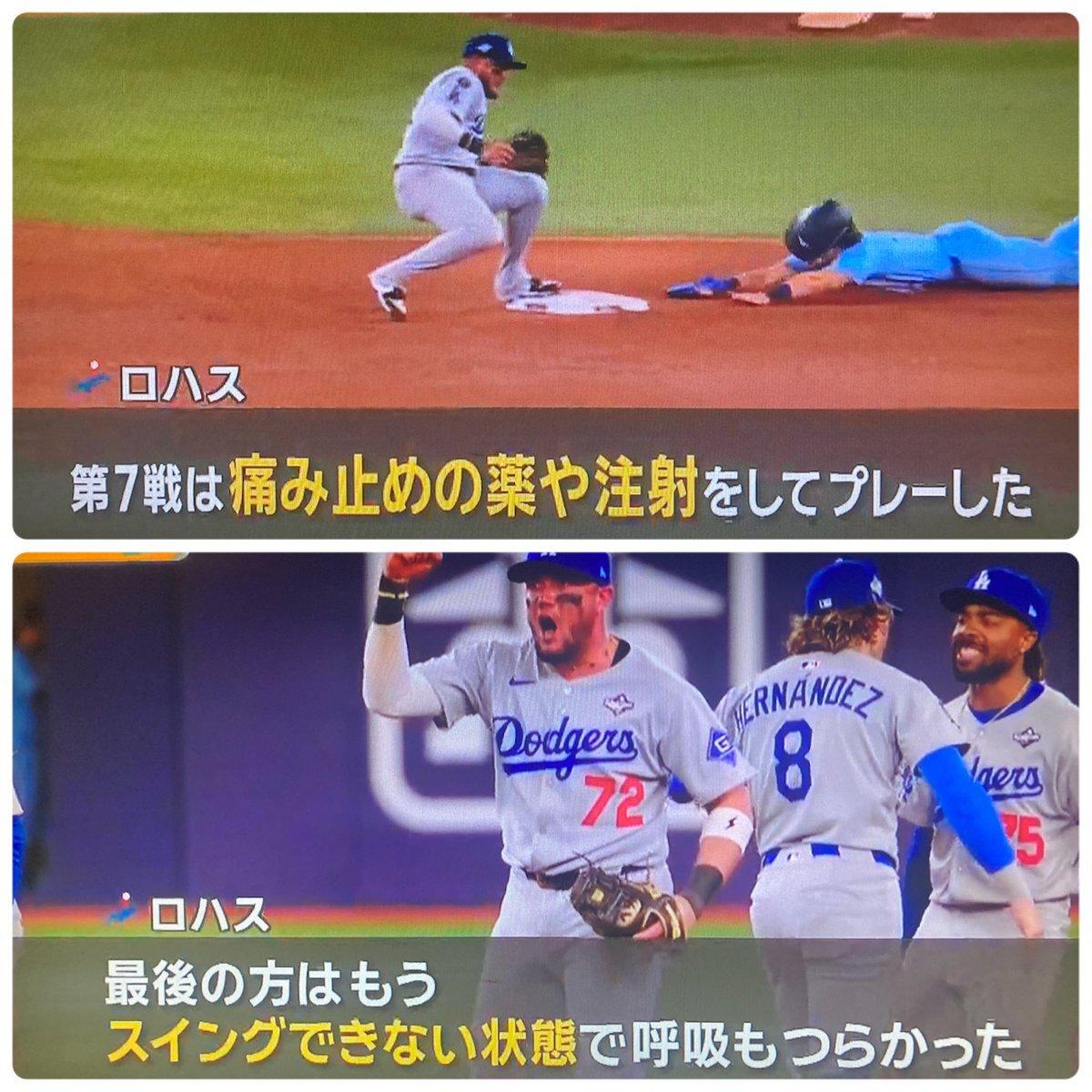 ロハス、実は骨折していた…‼️ 第6戦、最後のこのアウトの場面で肋骨に鋭い痛みが走った😨 第7戦は痛み止めの薬や注射をしてプレーした 最後の方はもうスイングできない状態で呼吸もつらかった なのに…MLB12年で通算57HR男が値千金の同点弾‼️ 更に満塁でサヨナラ負けを阻止‼️ ロハスありがとう😭 pic.x.com/wduliSOUv6