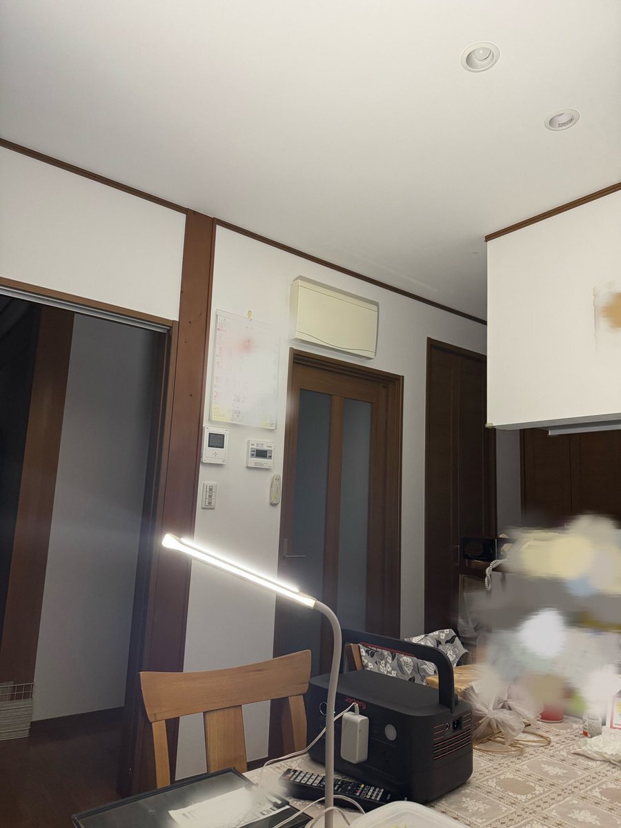 防災用にポータブル電源をガチでオススメしたい。 最近、家の近くで電線が切れて付近一帯が 3〜4時間位停電したんだけど 夜でもポータブル電源があったから助かった。 2枚目の写真は停電中だけど LED照明を天井に向けて照らすことで、 部屋全体を明るくすることができた。 pic.x.com/RhPGO0tR0h