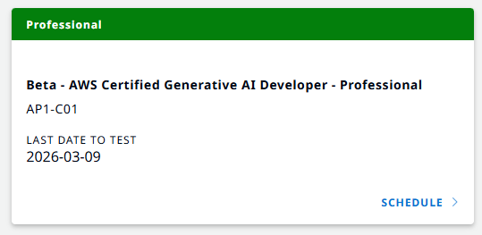 🔥AWS認定:予約開始🔥 AWS Certified Generative AI Developer - Professional (AP1-C01) の予約受付が開始! このベータ試験に合格すると、全世界で先着5,000名に特別なデジタルバッジを差し上げます 日本語で受験いただけます、ぜひチャレンジください!