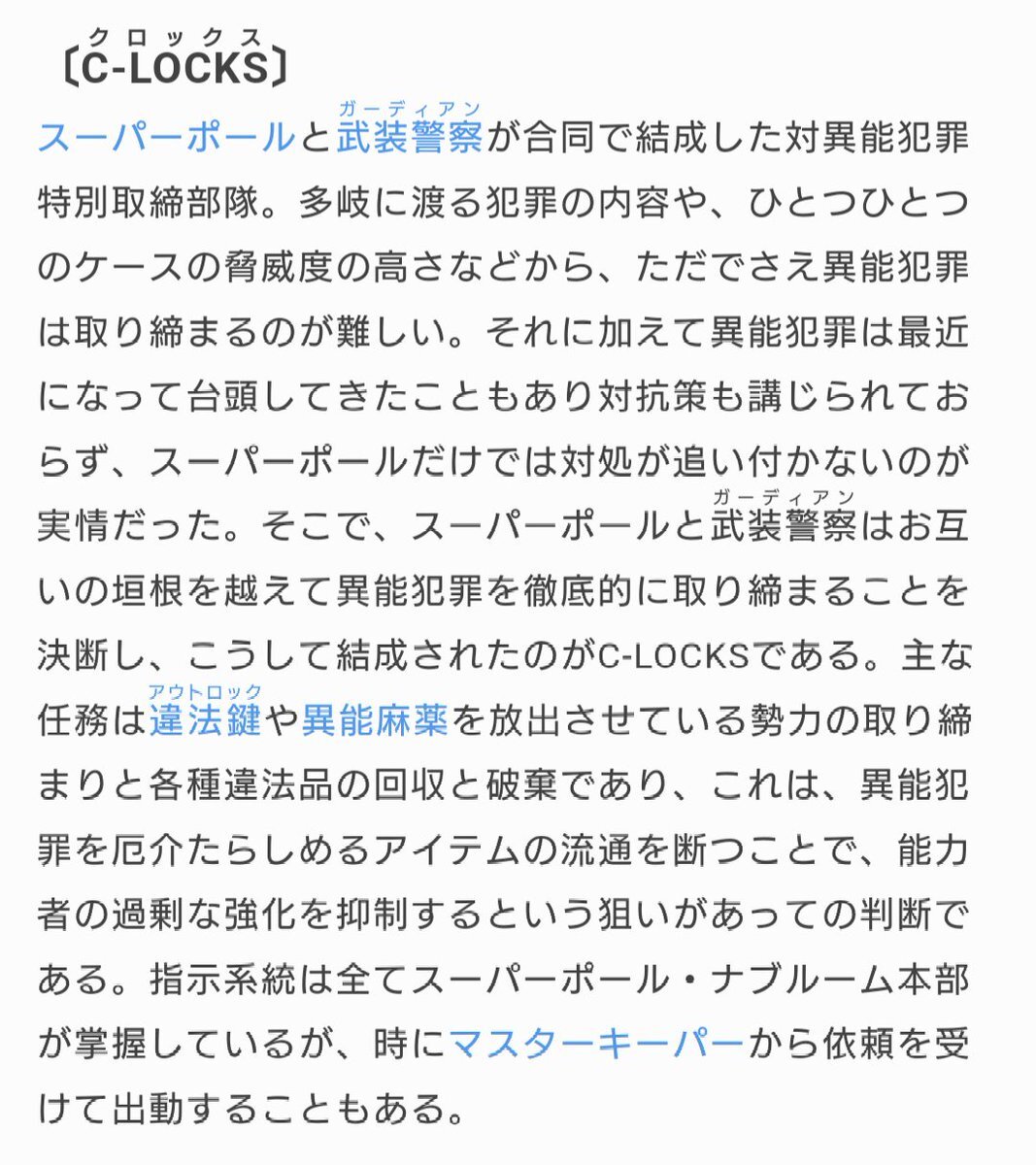 【お知らせ】 異能犯罪の徹底的な駆逐を目指して結成された特務機関「C-LOCKS」と、全世界で能力解錠の開発から配布までを一手に担う宇宙政府直属組織「マスターキーパー」の設定を公開しました! 《C-LOCKS》 privatter.net/p/11772724 《マスターキーパー》 privatter.net/p/11772718 pic.x.com/wIk9ECkM0p