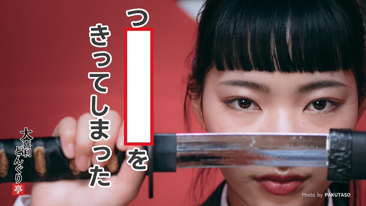 【通常お題】つまらぬものをきってしまった 空欄を埋めて面白くしてください 人気1位 2ポイント、2位1ポイント どんぐり賞あり、すしぱく賞なし おひとり3作品まで PAKUTASOモデル:なんこさん