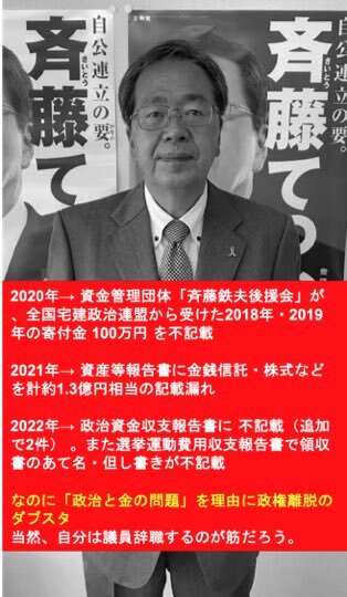 公明・斉藤代表「もう二度と政治の停滞を招かないために、政治と金の問題に一刻も早く決着をつけるべきです!与野党の枠を超えて断固実現していこうではありませんか!」 自分のは『不記載』他人は『裏金』 国民はちゃんと見てますよ👀 sn-jp.com/archives/256523