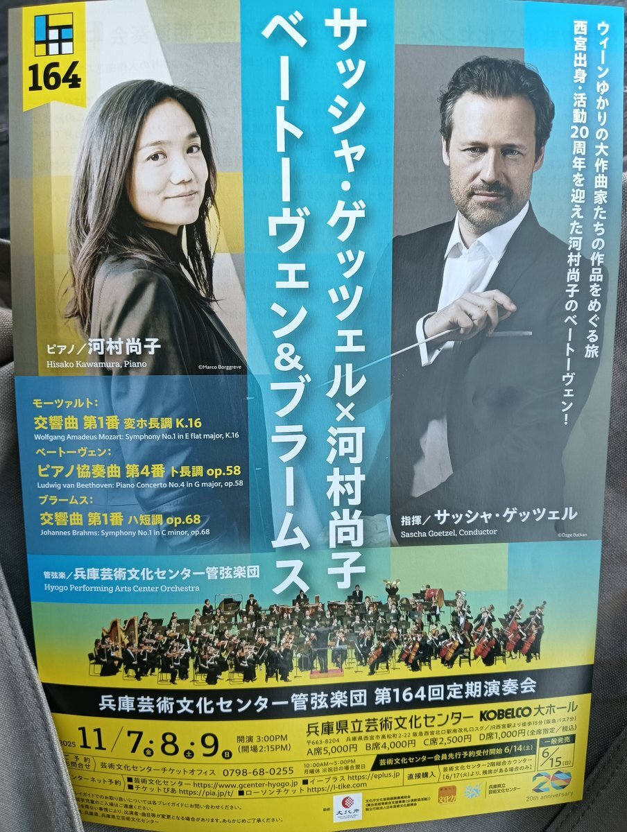 【2025/11/8(土)開催】 兵庫芸術文化センター管弦楽団 第164回定期演奏会 サッシャ・ゲッツェル×河村尚子 ベートーヴェン&ブラームス 兵庫県立芸術文化センターKOBELCO大ホール(大ホール/2,001席)座席表 zaseki.music-mdata.com/event-list/b35…
