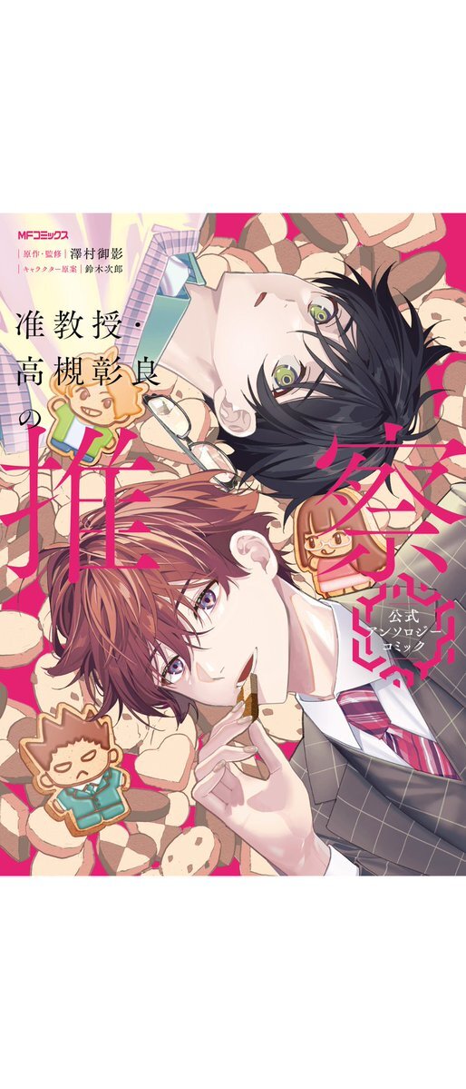 『准教授・高槻彰良の推察 公式アンソロジーコミック』発売中です。この表紙のクッキー、可愛いですよね!誰が焼いたんだろうこれ(笑)。瑠衣子?高槻もクッキー焼ける(エマに教わってる)けど、絵下手だからなあ…。 中身もクッキー缶のようにバラエティに富んでいて楽しいですよ! pic.x.com/MAw0xxiseS