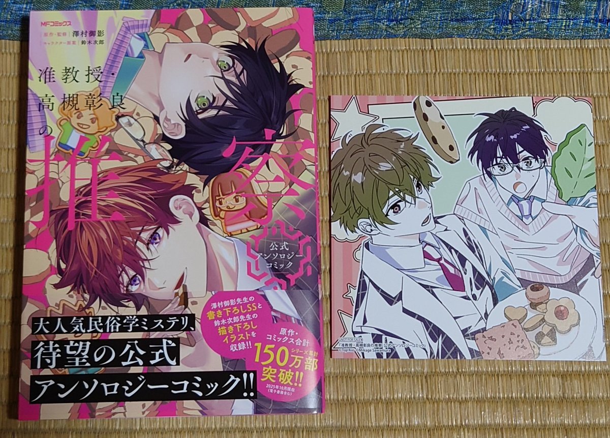 アニメイト通販より届きました、准教授・高槻彰良の推察公式アンソロジーコミック♪(∩´∀`)∩ワーイ アニメイト特典のミニ色紙も可愛い♪(*´ω`*) 早速紙の匂いをクンカクンカしてから堪能しますよー♪(*´ω`*) pic.x.com/AHmjTwEZjZ