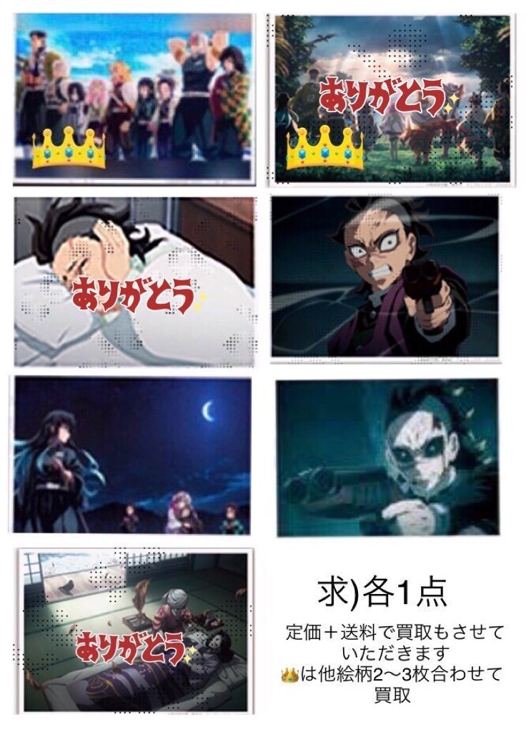 @no_TL【交換】アニメ「鬼滅の刃」全集中展 -刀鍛冶の里編・柱稽古編- OP・ED場面写ポストカードセット<柱稽古編> 譲)写真1枚目(黒死牟 童磨 猗窩座 鬼 しのぶ 悲鳴嶼 甘露寺 無一郎 実弥)から悲鳴嶼含む2枚 求)写真2枚目、善逸2枚まとめて Yフリマ交換機能or郵送 よろしくお願いいたします x.com/hommm_0316/sta…