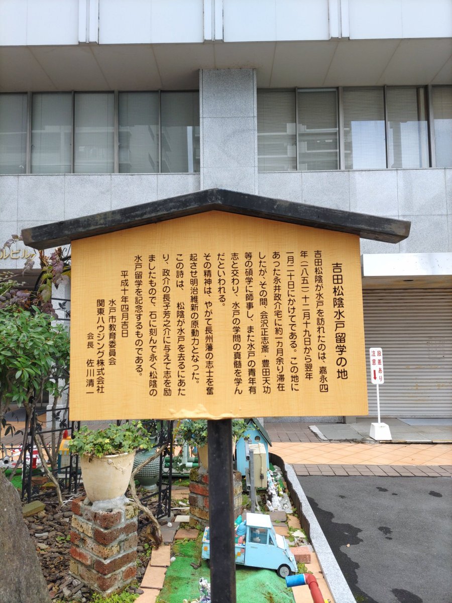 水戸芸術館近くで、偶然「吉田松陰 水戸留学の地」を発見! 吉田松陰と言えば、奇兵隊の高杉晋作や尊王攘夷を推し進め禁門の変を戦った久坂玄瑞、初代総理大臣の伊藤博文をはじめ数多くの明治維新の志士を育てた偉大な教育者ですが、水戸で吉田松陰縁の地に出会えて、ちょっと嬉しかったです🤗 pic.x.com/ieuFUC9IGy