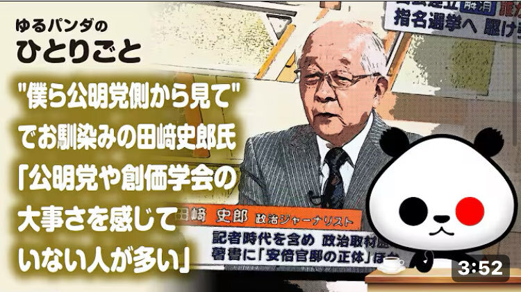 ひとりごと「"僕ら公明党側から見て"でお馴染みの田﨑史郎氏『公明党や創価学会の大事さを感じていない人が多い』」 youtu.be/zmwpzGLf1fY?si… @YouTubeより 宗教で政治を歪めようとする活動家。マスゴミ共々狂っている。