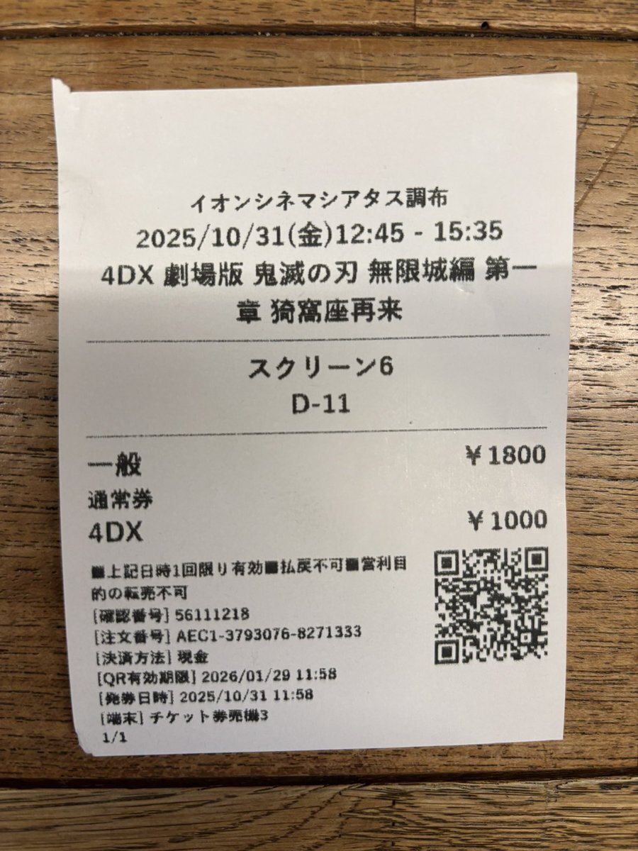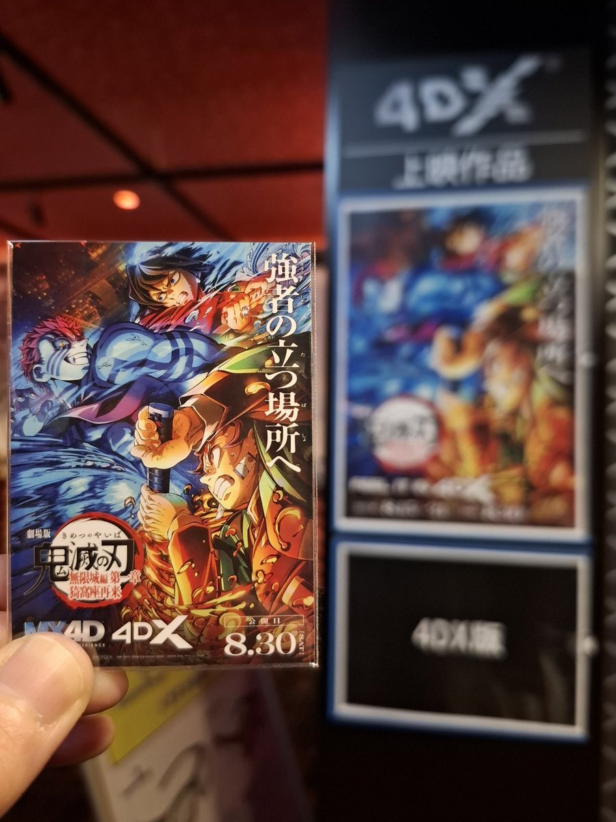 本日2本目 【大人気】体感型アトラクションシアター4DX上映 劇場版『鬼滅の刃』無限城編 第一章 猗窩座再来を楽しみます 入場者特典、すぐ無くなりそうなので貰えるうちに2枚目ゲット✌️ #鬼滅の刃 #無限城編 #4DX #鬼滅の刃無限城編第一章猗窩座再来 pic.x.com/yUryThIDvW
