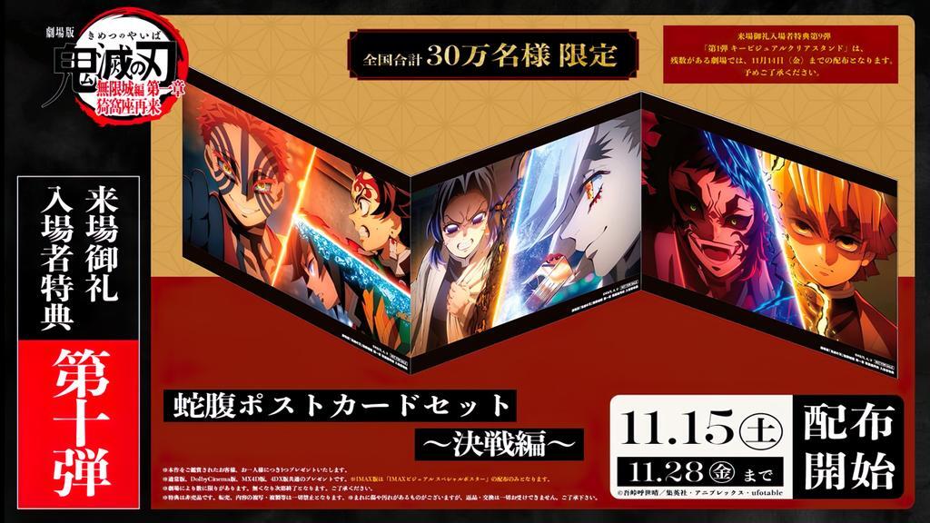 来場御礼入場者特典 第10弾 劇場版「鬼滅の刃」無限城編 第一章 猗窩座再来 「蛇腹ポストカードセット~決戦編~」 入城7回目、2回目の4DX。4DX一番好きかも。今回はいつもと違う場面でも涙…本当に素晴らしい作品! #鬼滅の刃 pic.x.com/C1ddQpXQ0Q