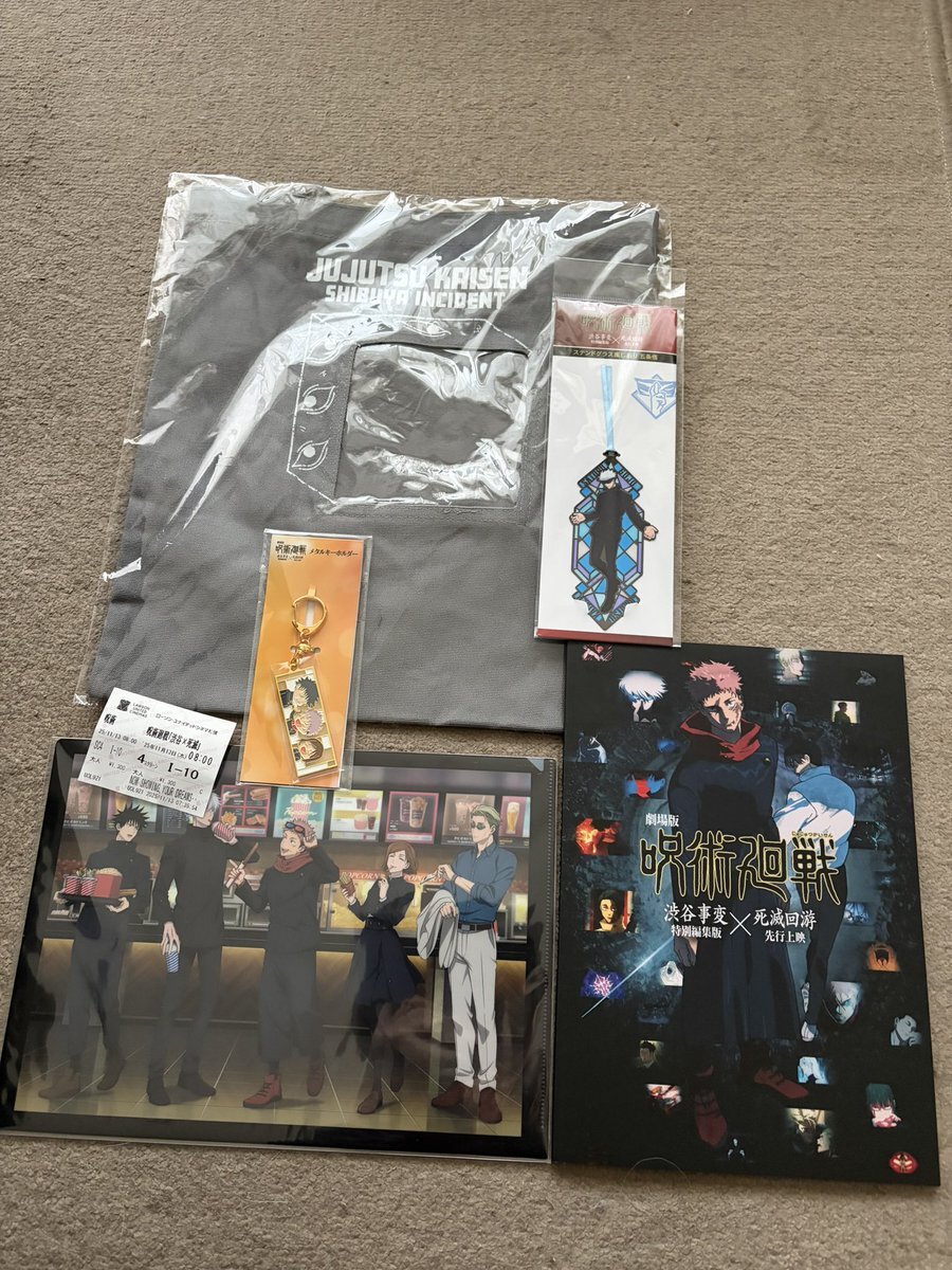 有給取って、朝一で劇場版 呪術廻戦 「渋谷事変 特別編集版」×「死滅回游 先行上映」観てきた! 渋谷事変でウルってなったのに 、歩く顔良し声良しコンプラ違反男のおかげで涙引っ込んだよ。 てか、ゆうた先輩に頼むくらいゆうじの事を気にしてるのね先生。 特典貰えなかったけど、グッズは沢山。 pic.x.com/f52jfmp35q