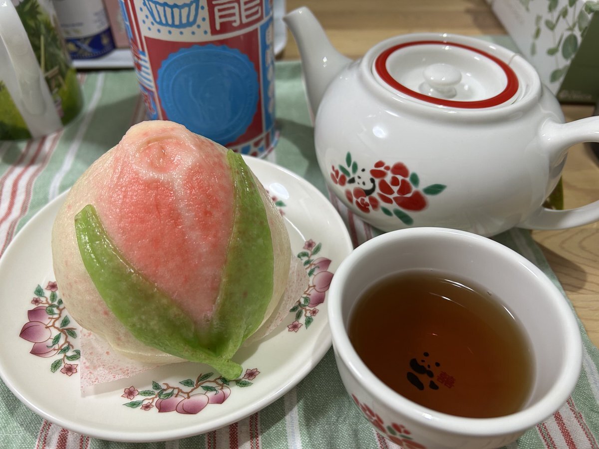 中華街の北京飯店で買った桃まん🍑蓮の実餡と迷って、黒餡にしたけどおいしい〜 かわいい〜 誕生日でもないけど、ほかほかの点心食べると嬉しくなるね 肉まんも別日に食べたけど、あっさりめで好きな味だった pic.x.com/vu7RUE6Vg1