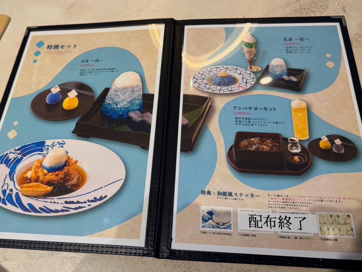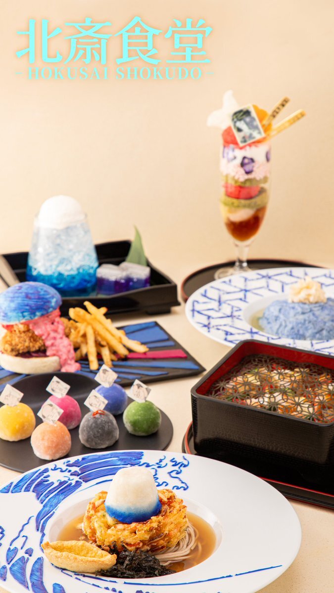 / 「ぜんぶ、#北斎のしわざ でした。展」 テーマカフェ 『#北斎食堂』 営業中🌊 \ 「もし北斎が食堂を開いたら?」という視点から着想を得た、独創的なメニューをご用意! 🟦営業時間:11:00~19:00 予約・展覧会チケットなしでご利用可能です! 🔻詳細 hokusai2025.jp/special/#20250… #北斎展 #北斎