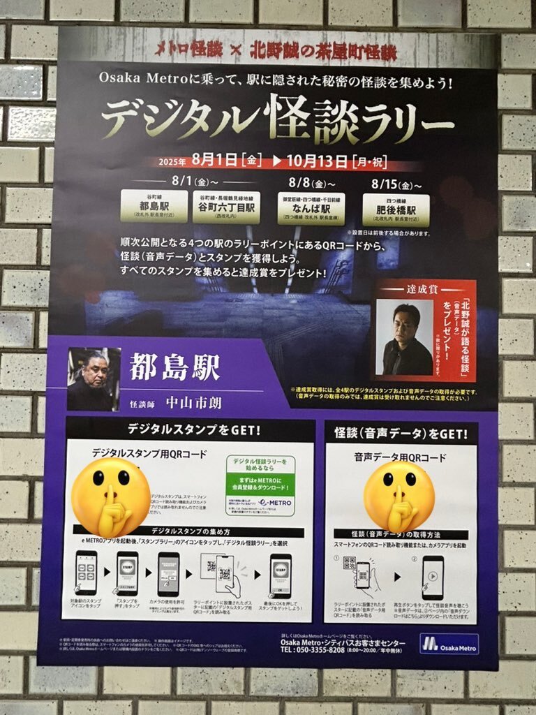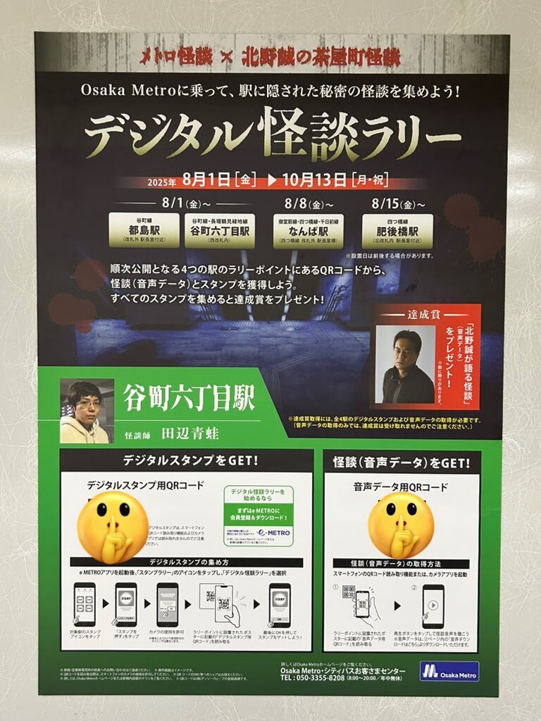 ボス・中山市朗、そして田辺青蛙さんの怪談をようやくゲット👌👻✨ このゲットした怪談を、電車に乗りながら、目を閉じて聴く。 これぞメトロ怪談‼️#デジタル怪談ラリー 「#メトロ怪談× #北野誠の茶屋町怪談」企画! 📣🚃怪談ファン、鉄道ファン、撮り鉄の皆さーん !電車大好きキッズも‼️ Osaka pic.x.com/CmOZ0KiFNq